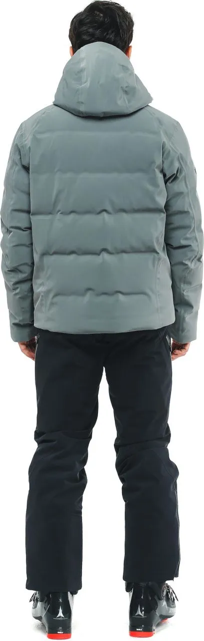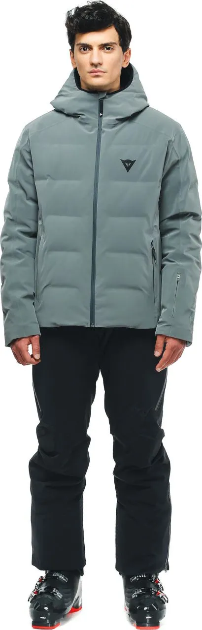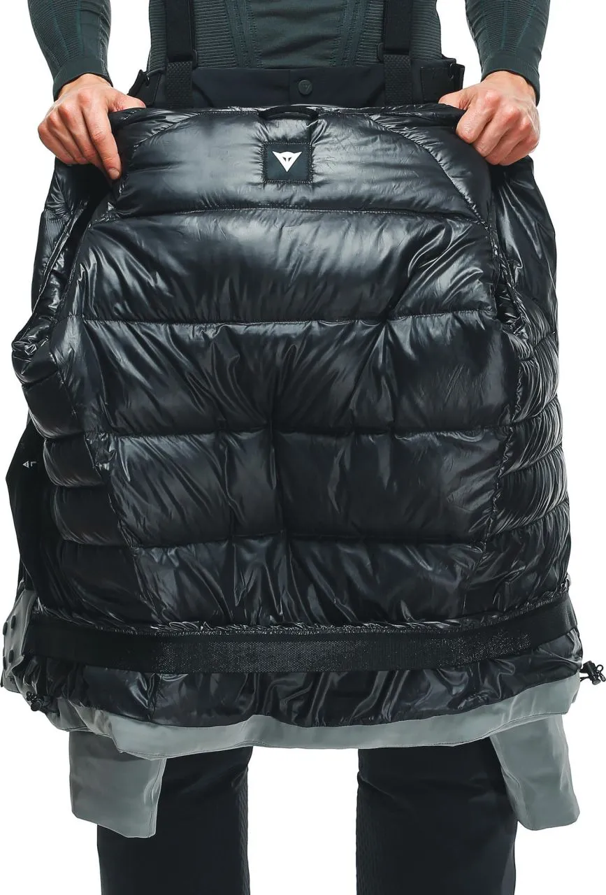 Ski down jackets are an icon of the Dainese collection. They maximize thermal insulation and guarantee maximum comfort in all weather conditions. The SKI DOWNJACKET is a must-have for the winter. A cross-functional down jacket with impermeable membrane in Dermizax® EV 20,000 mm/20,000 g/m²/24h, stretchable in four directions, and padding in warm goose feather with 750 CUIN fill power. Thanks to the high mobility and breathability guaranteed by the elastic membrane and superior insulating power, it is suitable for any winter sport. The fixed hood, the internal gaiters at the waist and the anti-snow cuffs on the inside of the sleeve complete the details of an equipment with which you can face any conditions.
