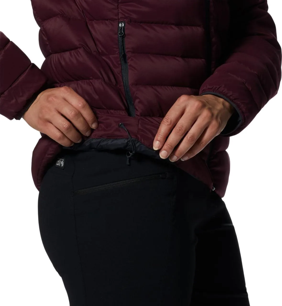 - The jacket can be stowed in the side pocket – just put it in your backpack or attach it to your climbing harness