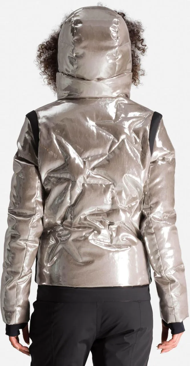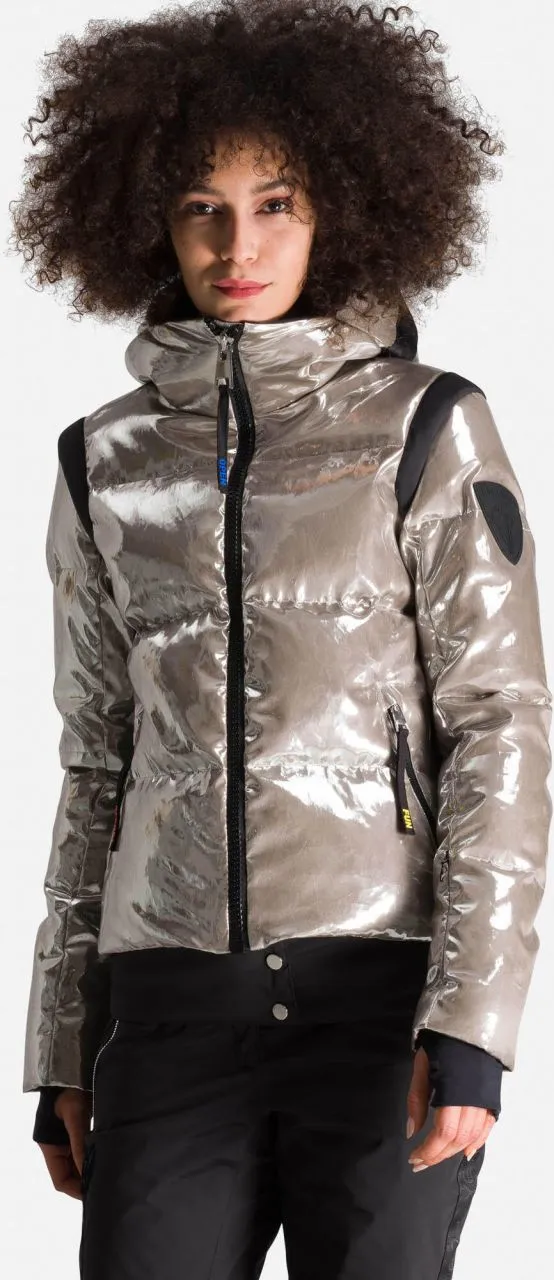 Bringing playful elegance to the slopes for 20 years. Two decades ago, Rossignol and French fashion visionary Jean-Charles de Castelbajac launched their first collection, combining highfashion style with highalpine skiwear. The Cosmic down jacket for women was created to celebrate the anniversary of the partnership. It features a waterproof shell and high loft down insulation for unparalleled weather protection on the slopes or après skiing. The eye-catching metallic look and an imaginative quilted pattern on the back give it that signature JCC style.