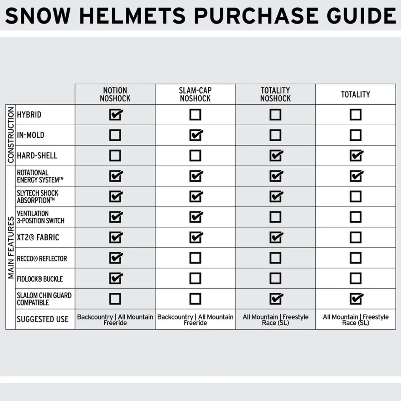 Are you searching for a lightweight ski and snowboard helmet that addresses rotational energy absorption while also providing an unrivaled fit and style? Then look no further than the SHRED. Totality. Thanks to its ROTATIONAL ENERGY SYSTEM™ (RES)—which is the lightest and thinnest solution for addressing rotational forces—and a ventilation system that maximizes vision and comfort by using 12 vents to pull warm air from your goggles and helmet, the Totality provides the performance, safety, confidence, and style you need to feel like a pro and have fun.Inside the box | 1 SHRED. Totality helmet | 1 SHRED. soft helmet bag